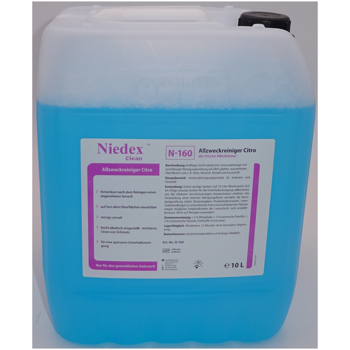 Kräftiger leicht alkalischer Universalreiniger mit Reinigungswirkung auf allen glatten, wasserfesten Oberflächen, wie Stein, Keramik, Metall und Kunststoff.
