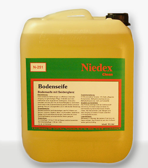 Seifenreiniger mit Reinigungsverstärker. Reinigt und pflegt in einem Arbeitsgang. Geeignet für alle Kunststoffbeläge, Natur- und Kunststeine. Hinterläßt einen angenehmen Seidenglanz, polierbar.