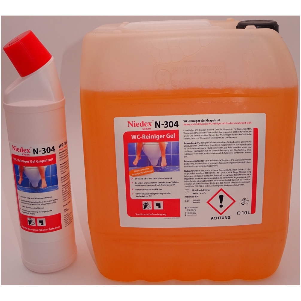 Für Bäder, Toiletten, Wannen und Duschräume. Haftet durch seine Viskosität an Toilettenrändern und senkrechten Flächen. Entfernt kraftvoll Urin-, Wasserstein, Kalkschleier sowie Schmutz- und Fettreste.