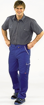 Knietaschen aus Cordura, 2 eingesetzte Beuteltaschen aus Cordura, Reflexbiesen an Tascheneingriffen und Patten, 1 Oberschenkeltasche mit Handytasche, Gummizug im Bund, 1 Gesäßtasche, Reißverschluß