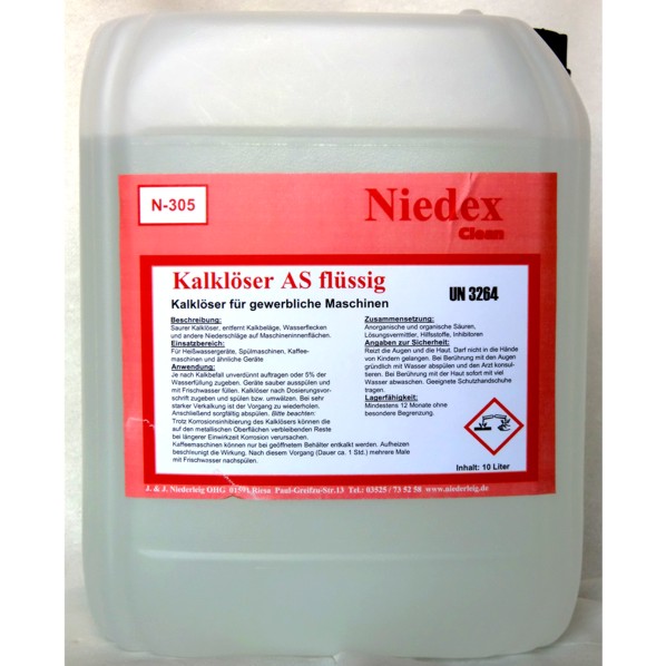 Stark saurer Reiniger für den Einsatz in Heißwassergeräten. Löst wirkungsvoll Kalkbeläge, verkalkte Maschinen atmen auf.