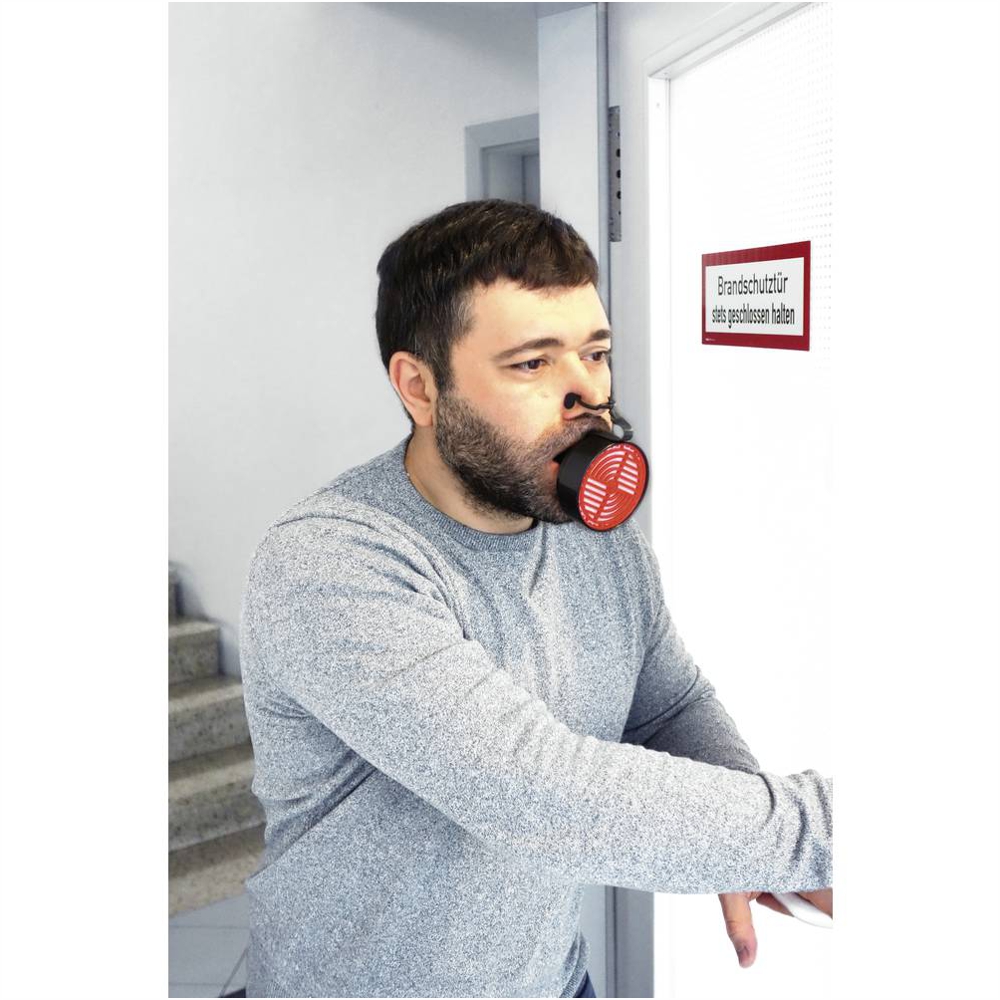 - aufgrund der Mundstückgarnitur (Mundstück und Nasenklammer, wie beim Schnorcheln oder Tauchen) ist das Fluchtfiltergerät für alle erdenklichen Nutzer, selbst für Bart- und Brillenträger, verwendbar