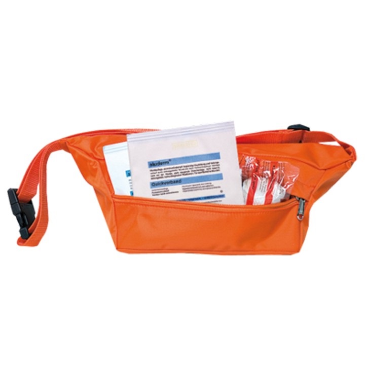 Inklusive: Sportbandage, Sport-Tape, Kühlspray, Kohäsiv-Binde, WS-Ideal-Binde, Schere, aluminiumbedampften aluderm® Verbänden und aluderm®-aluplast Wundpflaster, Gürteltasche
