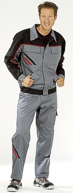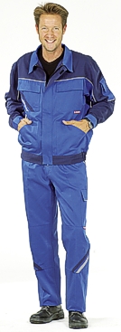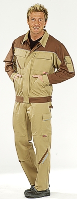 2 eingesetzte Beuteltaschen, 2 aufgesetzte Knietaschen mit farblichen Applikationen, Tascheneingriffe und Taschenpatten mit farblichen Biesen abgesetzt, doppelte Maßstabtasche, links Oberschenkeltasche mit Patte und Klettverschluss, Gummizug im Bund, 2 Gesäßtaschen mit Patten, Rundbund mit 7 Gürtelschlaufen, Reißverschluss im Hosenschlitz