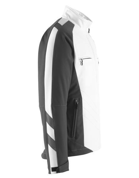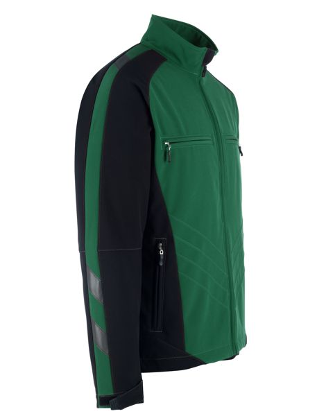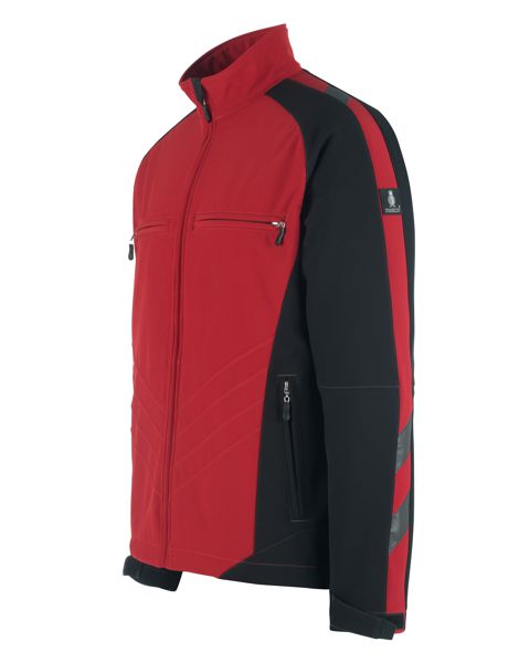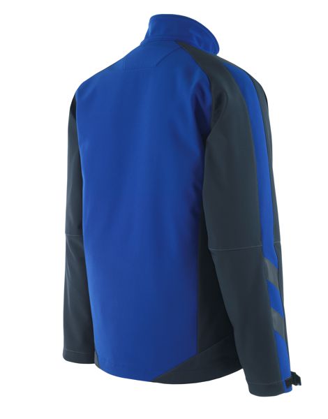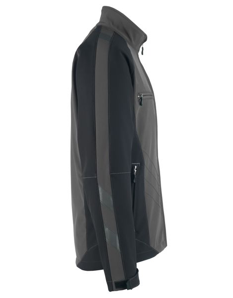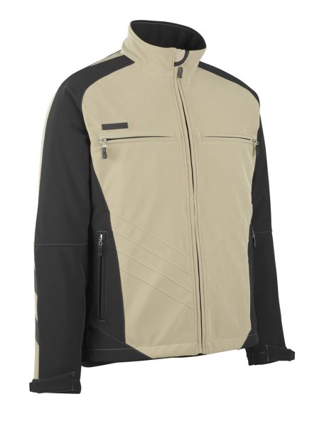Zweifarbig. Atmungsaktiv, winddicht und wasserabweisend. Fleece an der Innenseite. Verschluss mit Reißverschluss und inwendiger Wetterschutzleiste. Brusttaschen mit Reißverschluss. D-Ring. Vordertaschen mit Reißverschluss. Innentaschen. Ärmel sind Fasson geschnitten. Klettverschluss an den Handgelenken. Gummizug in der Unterkante, regulierbar. Kontrastnähte. Reflexeffekte. Material: 100% Polyester