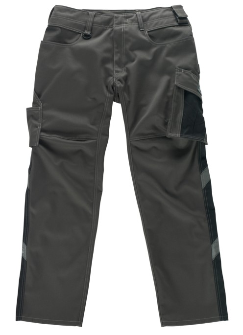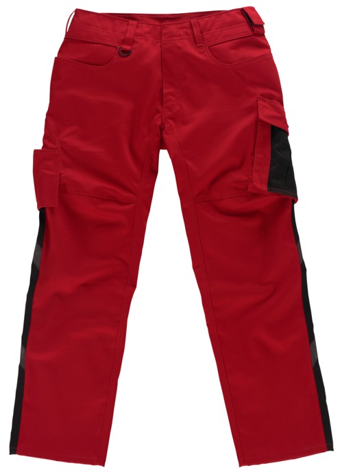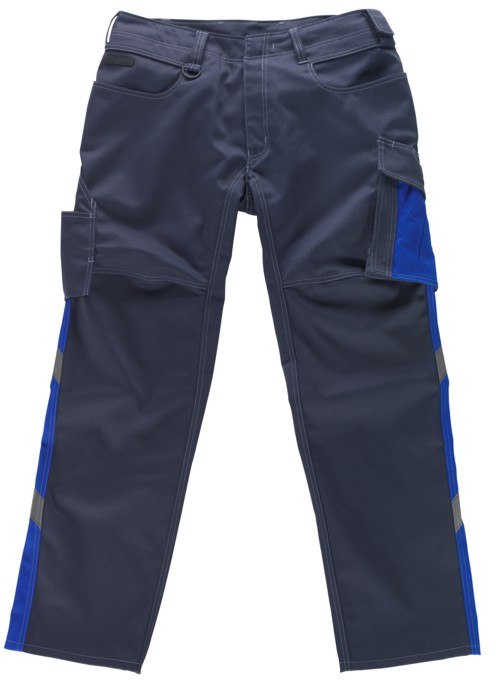 Zweifarbig. Dreifache Kappnähte an den Beinen und im Schritt. Niedrige Taille und formgeschnittener Bund. Hosenbeine sind ergonomisch geformt. Gürtelschlaufen. Hosenschlitz mit Reißverschluss. D-Ring. Werkzeugschlaufe am Bund. Gesäßtaschen, verstärkt. Hammerschlaufe,verstellbar. Schräge Schenkeltasche, durch Druckknöpfe individuell einzuteilen. Zollstocktasche, verstärkt. Geräumige Vordertaschen - eine mit leicht zugänglicher Handytasche. Kugelschreibertasche. Reflexeffekte. Getestet nach EN/ISO 15797 und bewertet von ETSA. Zertifiziert nach UV Standard 801, 12.1.10.0016-5. Material: 65% Polyester/35% Baumwolle