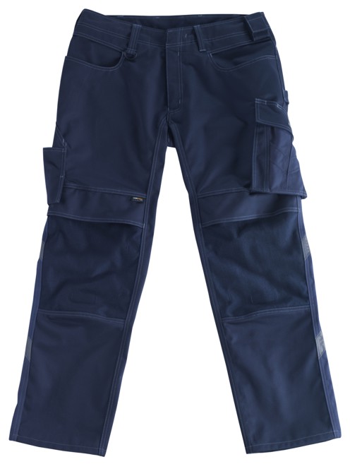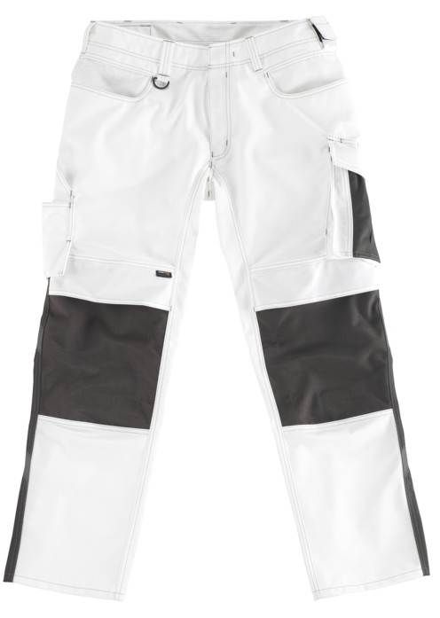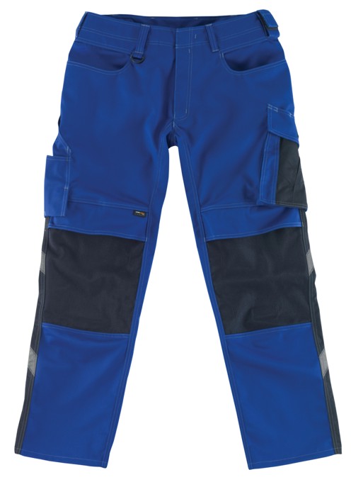 Zweifarbig. Dreifache Kappnähte an den Beinen und im Schritt. Niedrige Taille und formgeschnittener Bund. Hosenbeine sind ergonomisch geformt. Gürtelschlaufen. D-Ring. Hosenschlitz mit Reißverschluss. Werkzeugschlaufe am Bund. Geräumige Vordertaschen - eine mit leicht zugänglicher Handytasche. Gesäßtaschen, verstärkt. Hammerschlaufe,verstellbar. Schräge Schenkeltasche, durch Druckknöpfe individuell einzuteilen. Zollstocktasche, verstärkt. Kugelschreibertasche. Knietaschen aus Cordura® Gewebe, höhenregulierbar und mit Patte sowie Eingriff von oben. Reflexeffekte. Getestet nach EN/ISO 15797 und bewertet von ETSA. Zertifiziert nach UV Standard 801, 12.1.10.0016-5. Beim Gebrauch von MASCOT® Waterloo Knieschutz wird ein Schutz gemäß der Norm EN 14404 errreicht. Material: 65% Polyester/35% Baumwolle