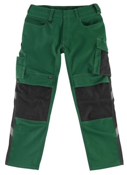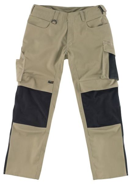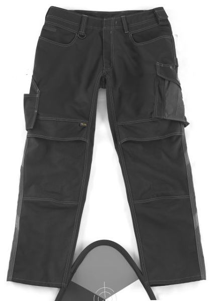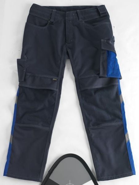 Zweifarbig. Dreifache Kappnähte an den Beinen und im Schritt. Niedrige Taille und formgeschnittener Bund. Hosenbeine sind ergonomisch geformt. Gürtelschlaufen. D-Ring. Hosenschlitz mit Reißverschluss. Werkzeugschlaufe am Bund. Hammerschlaufe, verstellbar. Geräumige Vordertaschen - eine mit leicht zugänglicher Handytasche. Gesäßtaschen, verstärkt. Schräge Schenkeltasche, durch Druckknöpfe individuell einzuteilen. Zollstocktasche, verstärkt. Kugelschreibertasche. Knietaschen aus Cordura® Gewebe, höhenregulierbar und mit Patte sowie Eingriff von oben. Reflexeffekte. Getestet nach EN/ISO 15797 und bewertet von ETSA. Beim Gebrauch von MASCOT® Waterloo Knieschutz wird ein Schutz gemäß der Norm EN 14404 errreicht. Material: 70% Polyester/30% Viskose (Tencel®)