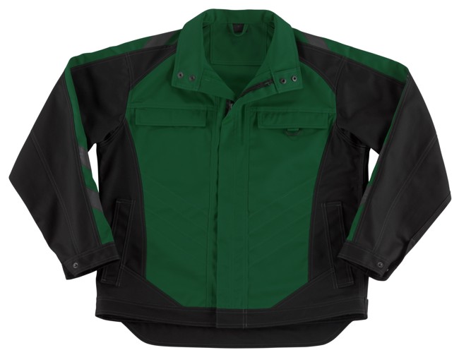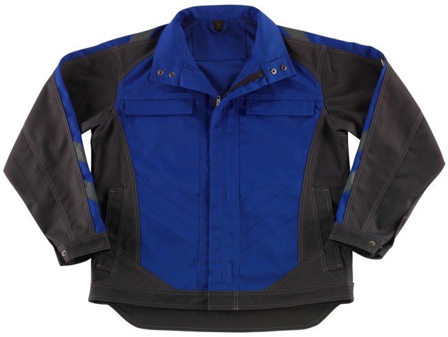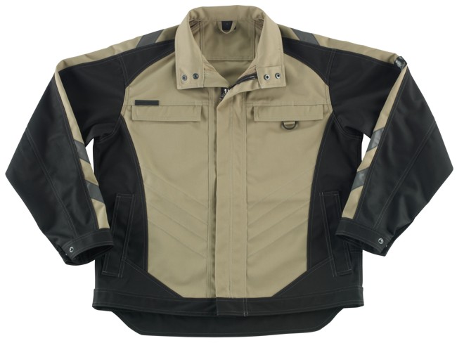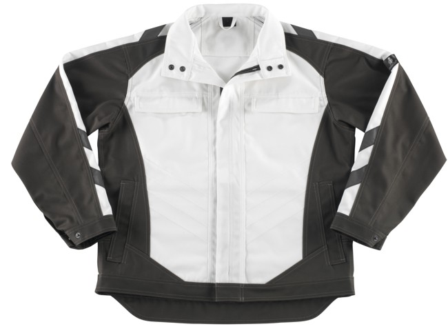 Zweifarbig. Dreifache Kappnähte an den Ärmeln und Seiten. Stehkragen. Verschluss mit Reißverschluss, Wetterschutzleiste sowie verdeckten Druckknöpfen. Rücken ist verlängert. Brusttaschen mit Patte und verdeckten Druckknöpfen. Leichter Eingriff zur integrierten Handytasche in der Brusttasche. Vordertaschen. D-Ring. Innentaschen. Bund mit Druckknopfregulierung. Manschetten mit Druckknopfregulierung. Kontrastnähte. Reflexeffekte.
