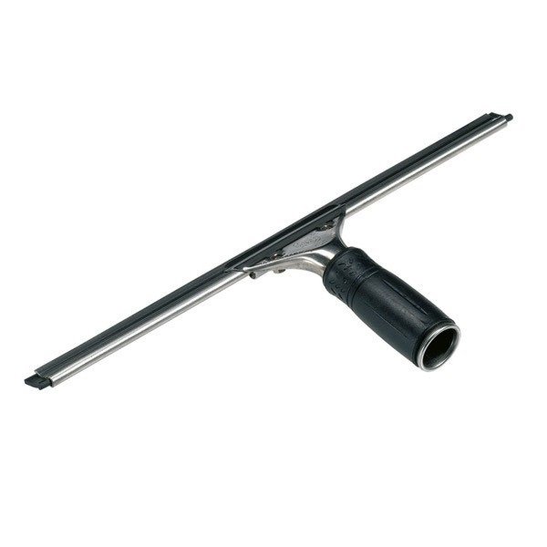 Den Fensterwischer aus Edelstahl erhalten Sie mit umspitztem Kunstoffgriff und original Wischergummi. Unser Fensterwischer lässt sich wie auch unsere T-Träger fest auf der Teleskopstange arretieren. Ein Verdrehen oder Herunterfallen auch bei großem Druck ist nicht möglich.