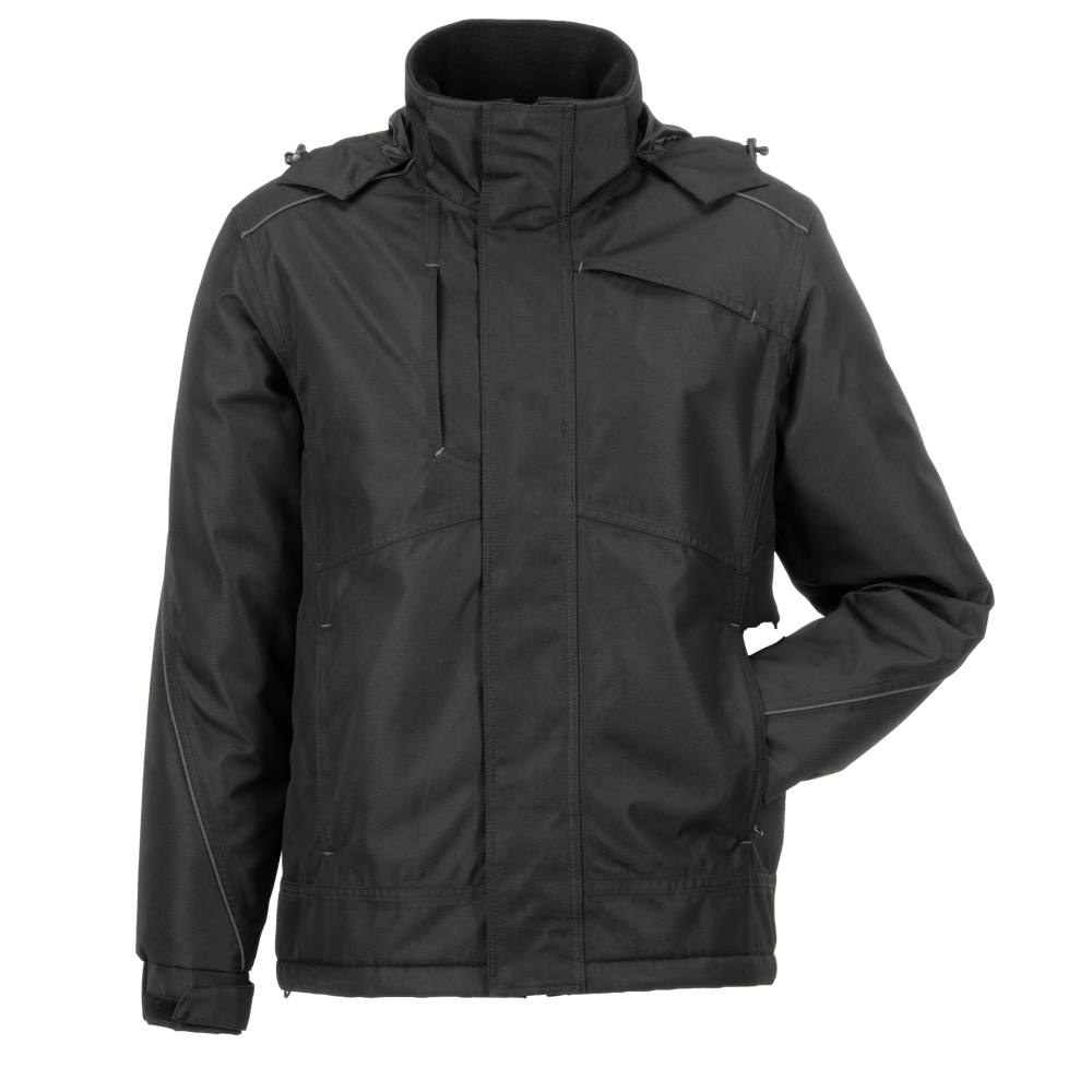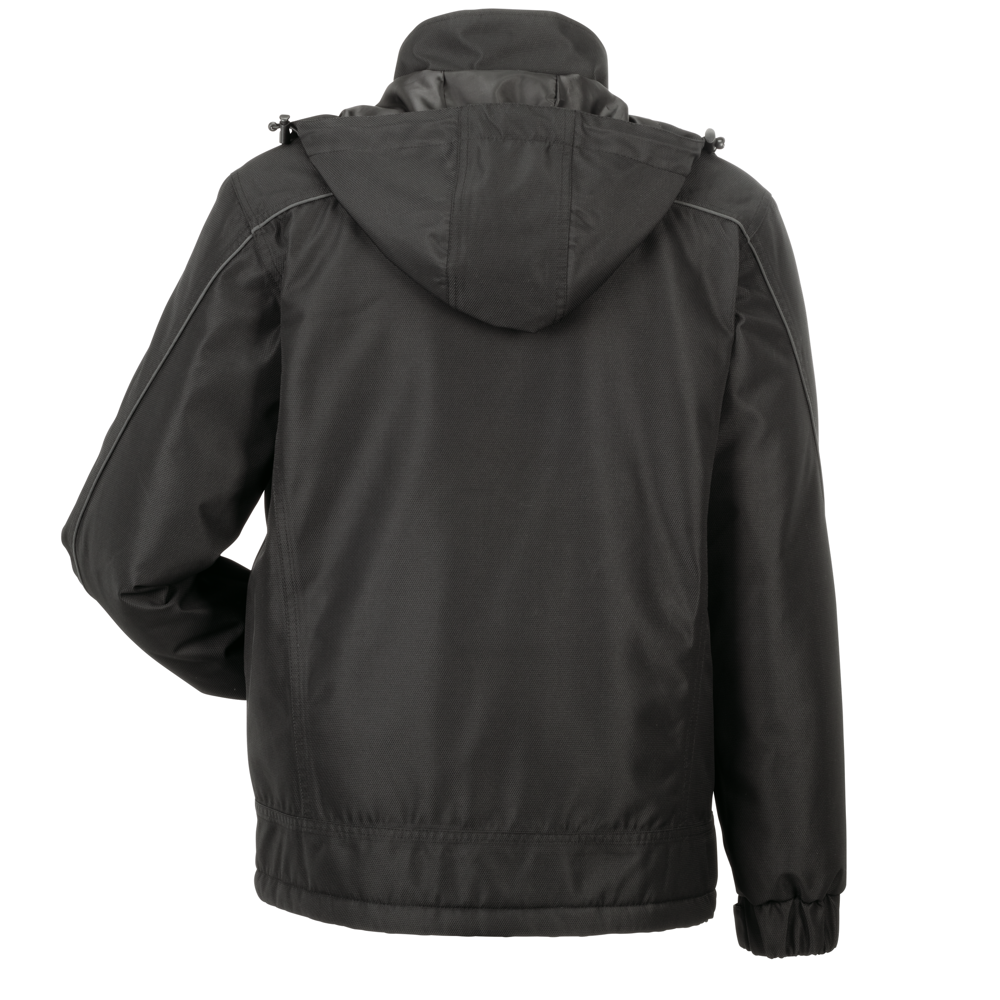 schwarze Reflexbiesen an den Ärmeln, Schultern und im Rückenbereich