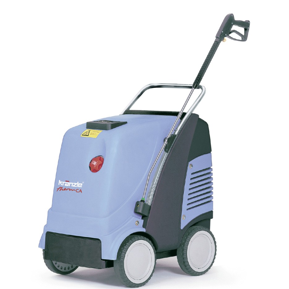 KRÄNZLE therm CA Heißwasser-Hochdruckreiniger. Integriertes Fahrwerk, Anschlußkabel 7,5 m, Stahlgewebe-Hochdruckschlauch, 10 m, Sicherheits-Abschaltpistole, Total-Stop-Einrichtung, stufenlose Temperaturregelung, stufenlose Druckregulierung von außen, eingebaute Dampfstufe, Vorbelüftung der Brennkammer, 25 l Brennstofftank, Messingpumpenkopf, Trockenlaufsicherheit, keramikbeschichtete Pumpenplunger, Sprühlanze mit Edelstahlrohr, Reinigungsmittelansaugung mit Filter