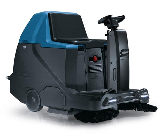 Die FIMAP FSR CB Aufsitzkehrmaschine mit 2 Seitenbesen ist die Batterielösung für Flächen bis zu 8.000 m².