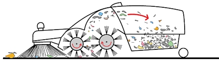 - Handkehrmaschine mit Doppelwalzen-Überwurfprinzip