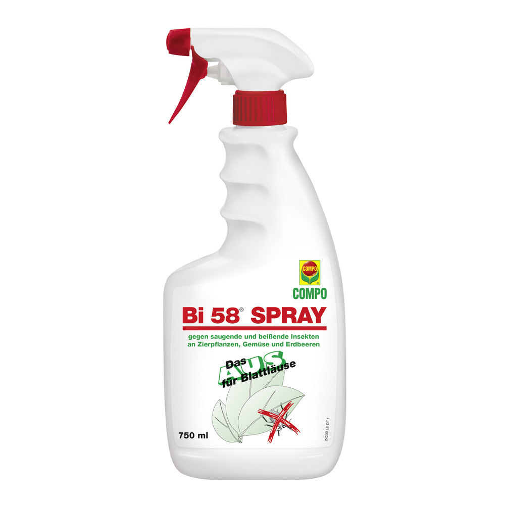Bi 58® Spray ist ein breit wirksames Insektizid gegen Blattläuse, Käfer und Raupen. Es beseitigt zuverlässig beißende und saugende Insekten an Zierpflanzen, Gemüse und Erdbeeren im Gewächshaus, Zimmer, Wintergärten und Balkonen. Der bewährte Wirkstoff Lamda-Cyhalothrin hat eine schnelle Sofortwirkung als Fraß- und Kontaktinsektizid. Durch die gute Pflanzenverträglichkeit ist es vielseitig einsetzbar.