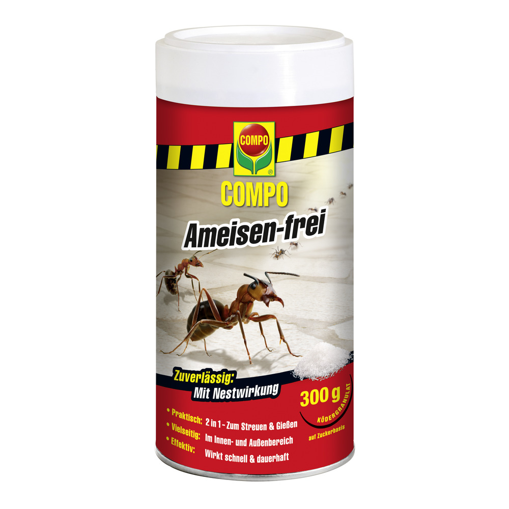 Streu- und Gießmittel zur zuverlässigen Beseitigung von Ameisen auf Wegen, Plätzen, im Haus sowie auf der Terrasse. Das gesamte Nest wird schnell und sicher bekämpft. Der enthaltene Bitterstoff macht das Produkt sicherer.
