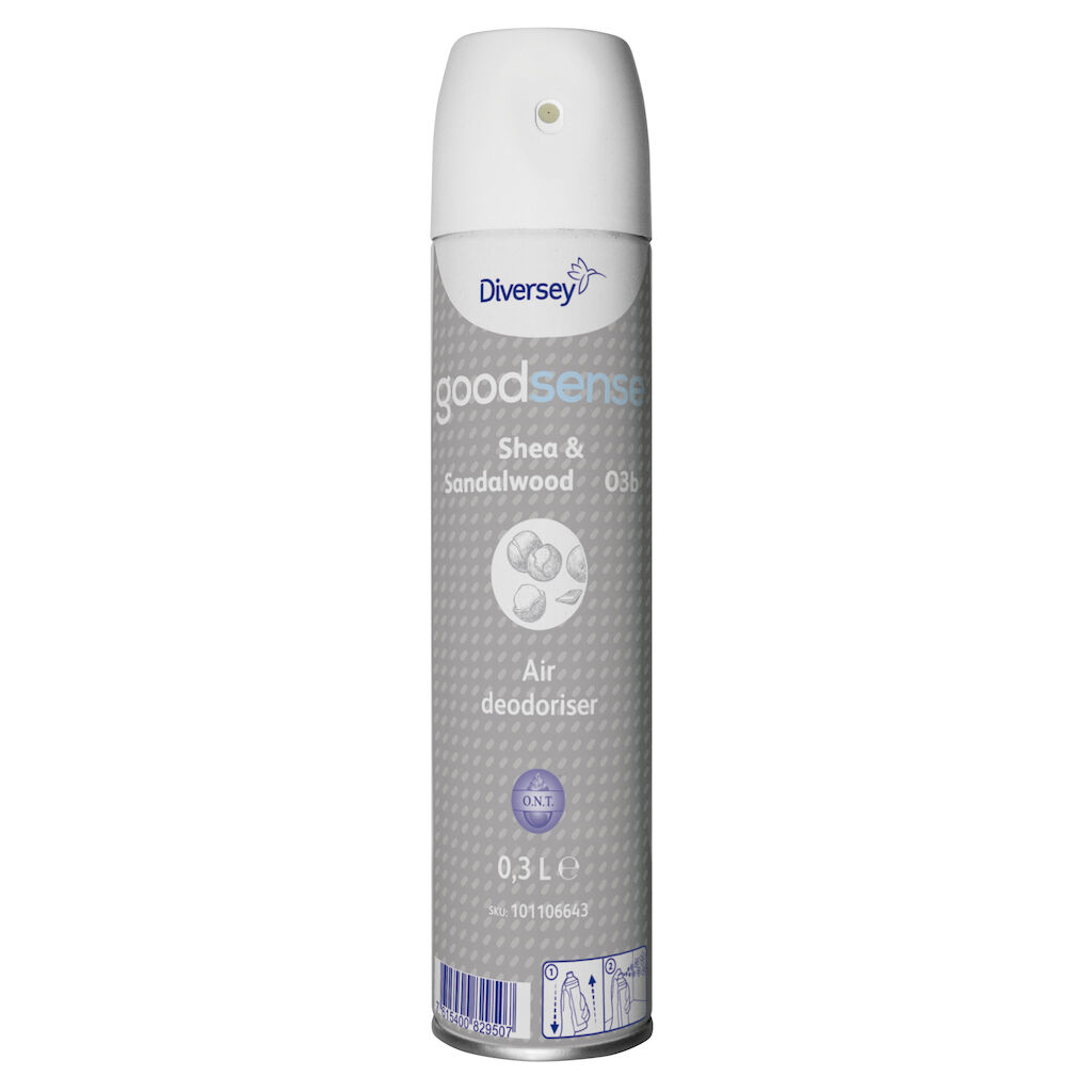 Das Good Sense Shea & Sandalwood Aerosolspray ist gebrauchsfertig.