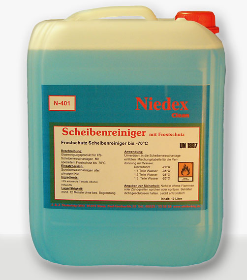 Defroster Scheibenreiniger, geeignet für die Kfz-Scheibenwaschanlage mit Frostschutz bis -60°C, bei 1:1 mit Wasser bis -23°C